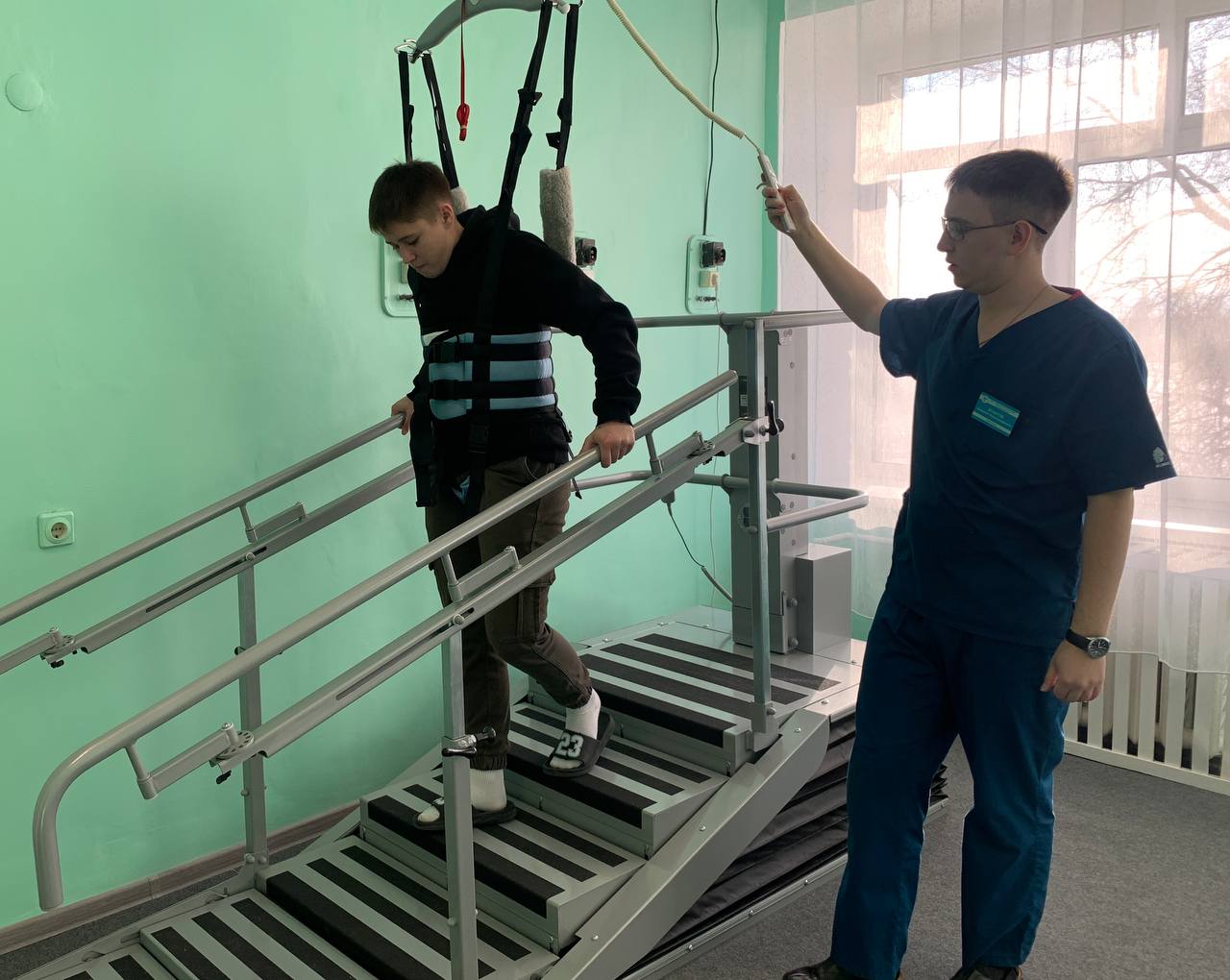 В отделении работают роботизированный тренажер для восстановления ходьбы, беговые дорожки, кардиотренажер, физиотерапевтическое оборудование. А также специальное реабилитационное ортопедическое устройство, созданное для приведения человека с ограниченными физическими возможностями в вертикальное положение и другие тренажеры.