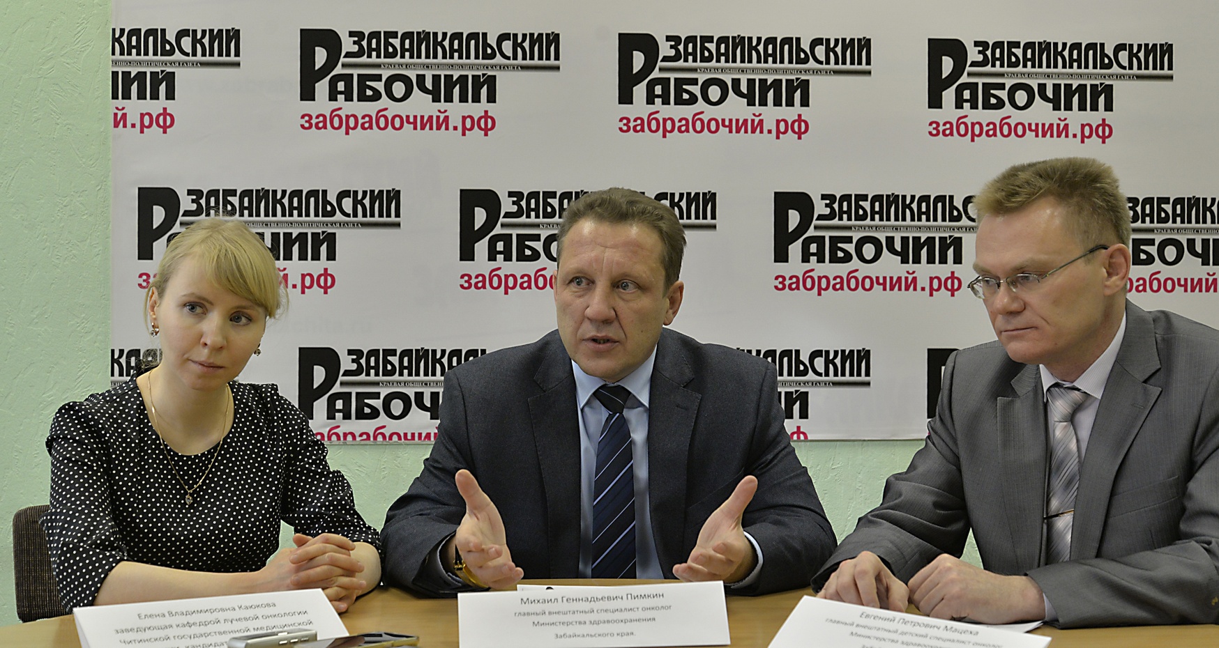 Во всемирный день борьбы против рака гостями редакции газеты "Забайкальский рабочий" стали врачи-онкологи - главный внештатный онколог Министерства здравоохранения Забайкальского края Михаил Пимкин, главный внештатный детский онколог Евгений Мацеха, зав. кафедрой онкологии ЧГМА, к.м.н. Елена Каюкова.