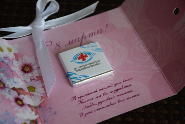 К празднику женщинам подготовили концерт-сюрприз, а еще каждая получила эксклюзивную шоколадку – в специально разработанной фирменной упаковке.