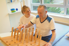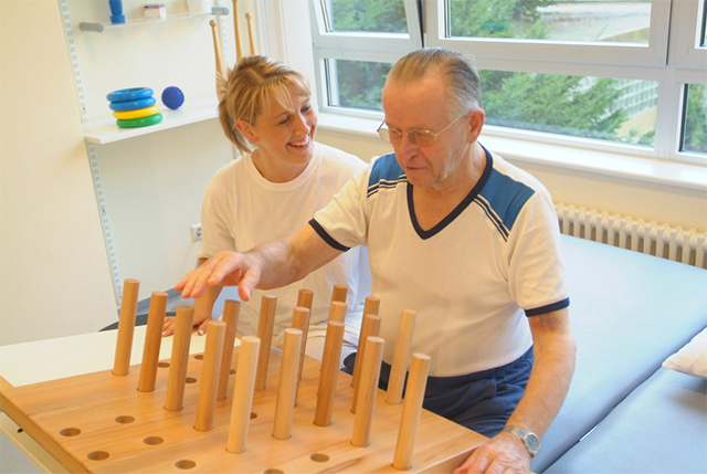 Эрготерапия — обязательный элемент неврологической реабилитации пациента с поражением головного мозга, помогающий восстановить повседневную деятельность. Задача эрготерапевта — повысить качество жизни людей, пострадавших от инсульта, и заново научить их обслуживать себя без посторонней помощи: умываться, открывать дверной замок, набирать телефонный номер и т.д.