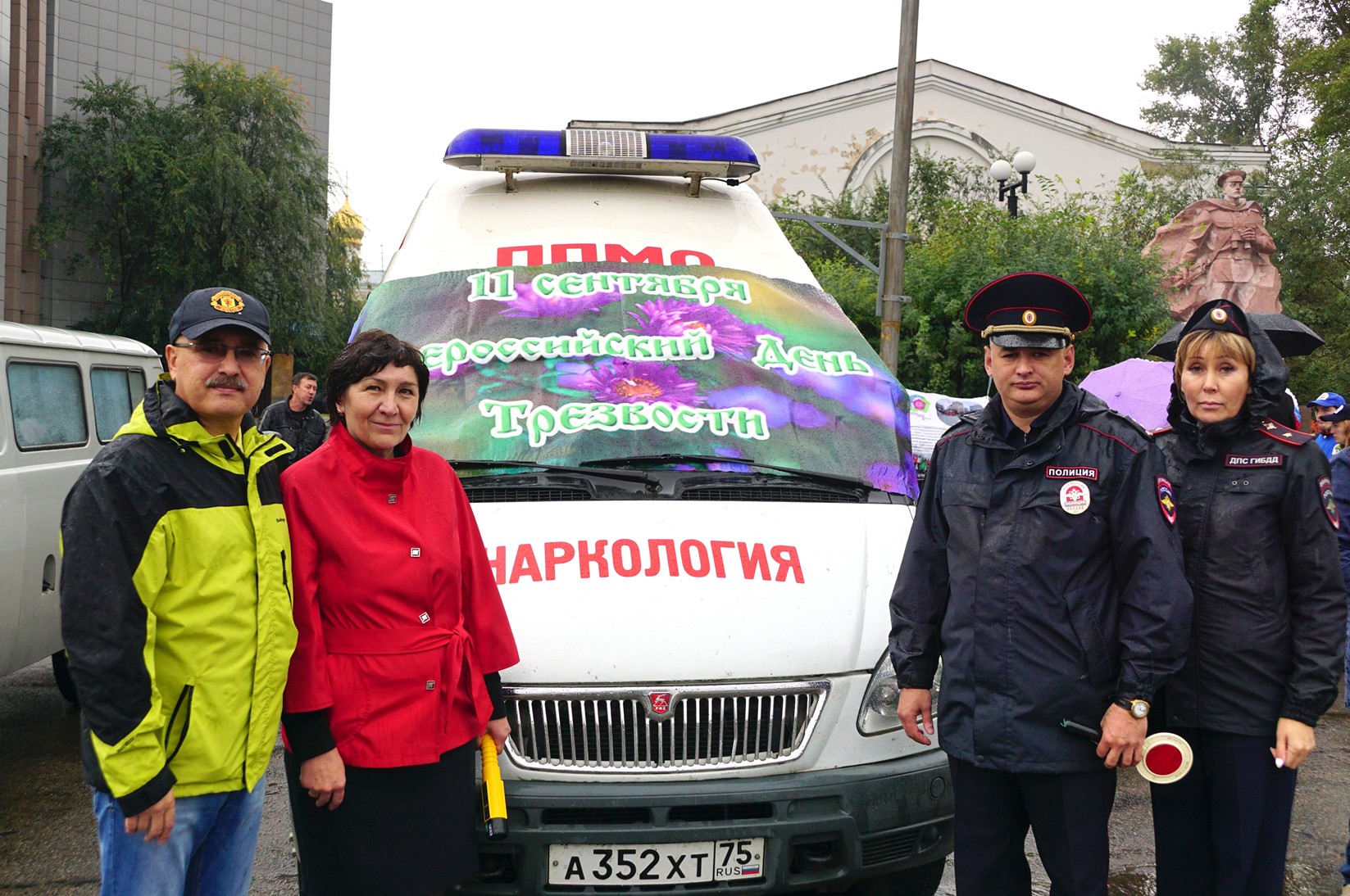 Сотрудники Забайкальского краевого наркологического диспансера, представители Ассоциации наркологов Забайкалья, Управления ГИБДД УМВД России по Забайкальскому краю, Читинской епархии, общественной организации «Трезвое Забайкалье», волонтеры наркодиспансера и ЗабГУ в этот день объединились и провели акции «Трезвая жизнь» и «Трезвый водитель» на площади Пограничников.