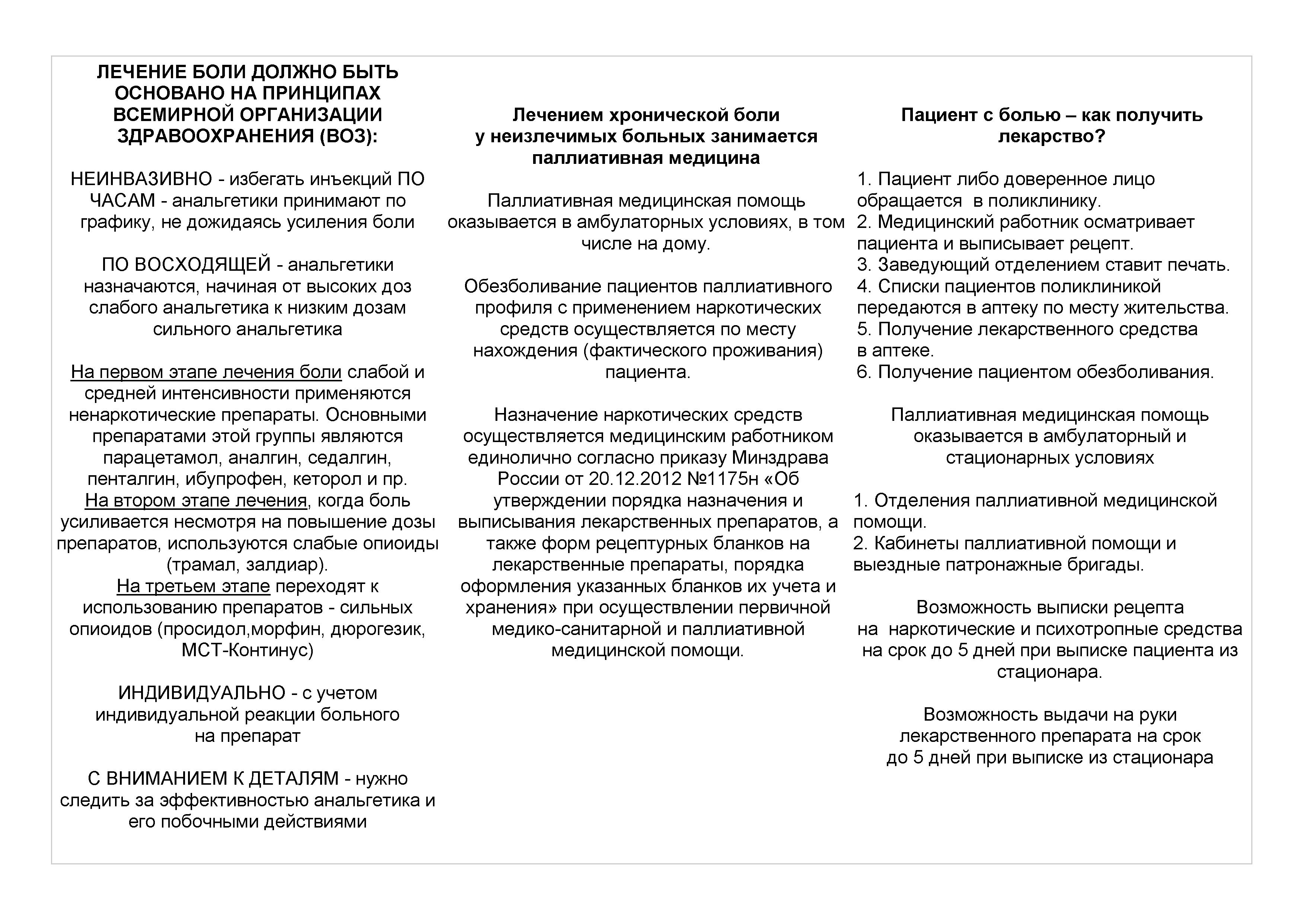 Лечение боли должно быть основано на принципах Всемирной организации здравоохранения