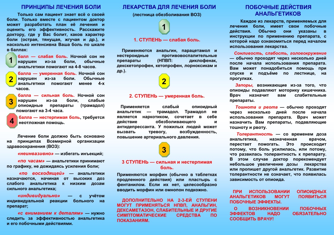Принципы лечения боли. Лекарства для лечения боли. Побочные действия анальгетиков