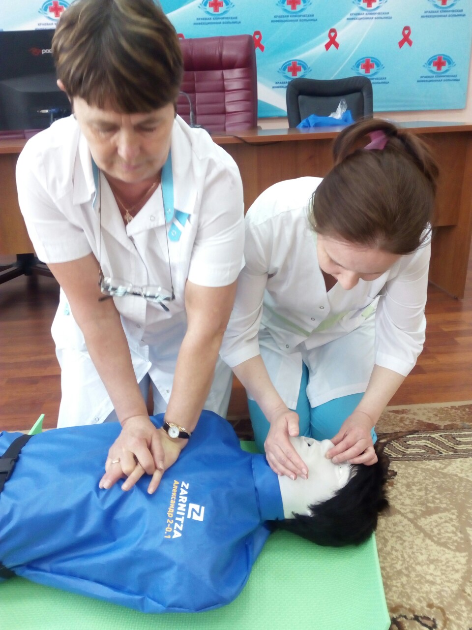 - 98% среднего медперсонала инфекционной больницы, наш главный врач, а также младший медицинский персонал, обучающийся по целевой подготовке в Читинском медицинском колледже, состоит в профессиональной организации. Одно из основных условий которой – непрерывное профессиональное развитие. Базовая сердечно-легочная реанимация является одним из ключевых вопросов в процедуре аккредитации, кроме того, ежегодно они сдают экзамен на профессиональную компетентность и один из вопросов – на эту тему. Раньше у нас была возможность для тренировки брать манекен на короткий срок. Теперь же все, кто хотят, смогут заниматься, сколько необходимо и в любое удобное время. Также на нашей базе проводится постоянно действующий мастер-класс по этому направлению. Мы очень довольны и благодарны, - рассказала главная медсестра ККИБ Елена Жигарева.