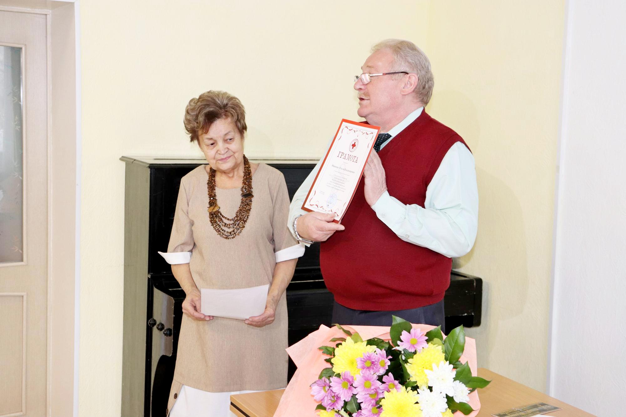 На базе станции скорой медицинской помощи в Чите прошло награждение Ольги Владимировны Ивановой, которая 50 лет проработала врачом на подстанции. Сейчас она продолжает свой трудовой путь в должности старшего врача смены. И сегодня Ольга Владимировна принимала поздравления и подарки от главного врача скорой помощи Николая Коновалова и коллег.