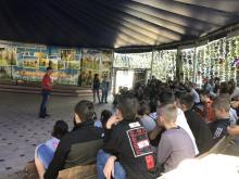 По словам заведующего профилактическим отделом Центра СПИД Александра Коробкова, текущая неделя расписана полностью - занятия проходят в разных пригородных лагерях.