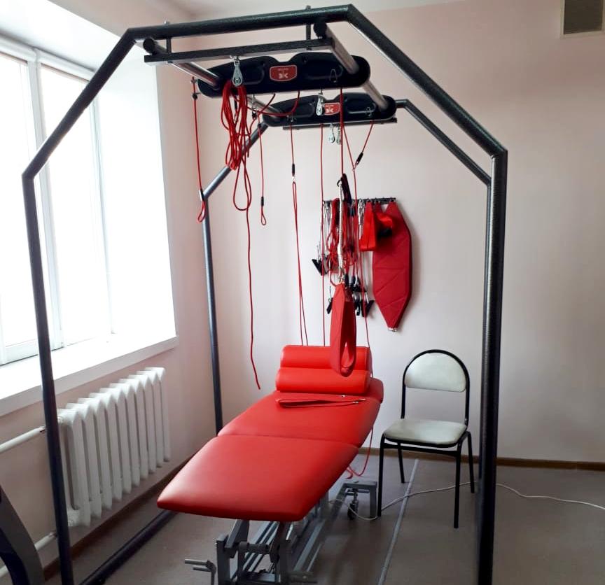 Одним из ценных приобретений стала кинезотерапевтическая установка «экзарта» - подвесная система, назначение которой – быстрое устранение боли и восстановление подвижности позвоночника и суставов. Она применяется для реабилитации после инсульта, при детском церебральном параличе, после заболеваний и травм спинного мозга, у пациентов с болью и ограничением движений в позвоночнике и суставах.