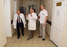 Валерий Кожевников и Олег Дубинин, главный врач наркодиспансера, обсудили нюансы проведения работ в таких зданиях. Министр также осмотрел поликлинику на ул. Верхоленская, 1 и отделение медицинской реабилитации на ул. Бабушкина, 30-а.