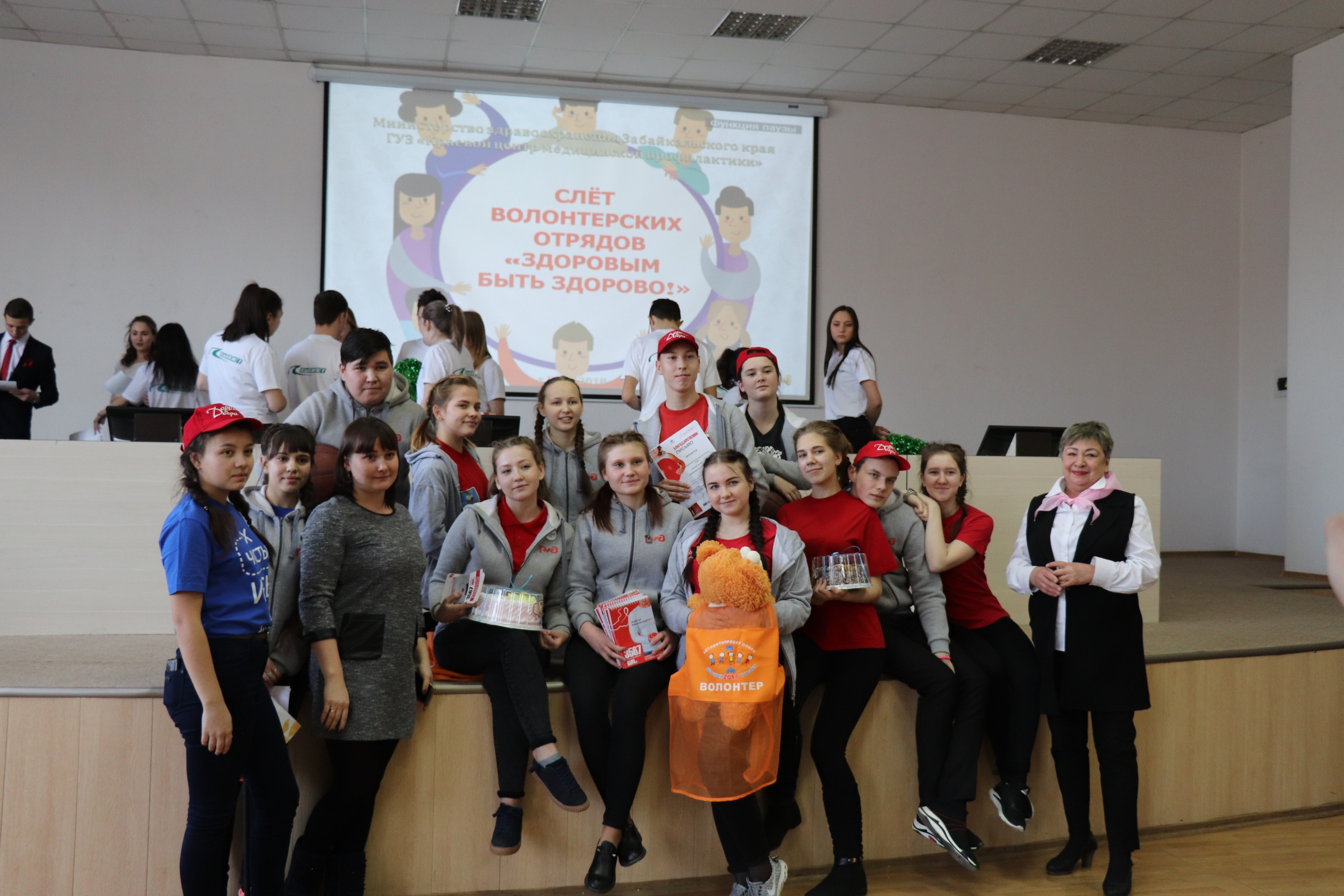 Так, за 2018 – 2019 учебный год 9 волонтерских отрядов (276 человек) из числа школьников, студентов профессиональных училищ и средних специальных образовательных учреждений, медицинского колледжа, подготовленных по утвержденной Министерством здравоохранения Забайкальского края программе, а также Забайкальские региональные общественные организации «За здоровое Забайкалье!» и «Трезвое Забайкалье» приняли участие в 16 массовых информационно–оздоровительных акциях, направленных на повышение информированности граждан о факторах риска развития основных неинфекционных заболеваний и формирование здорового образа жизни (ко Всемирному дню борьбы с артериальной гипертензией, Всемирному дню сердца, Дню здорового пищеварения, Всемирному дню здоровья, Всемирному дню без табака и пр.), а также стали участниками тематических флешмобов.