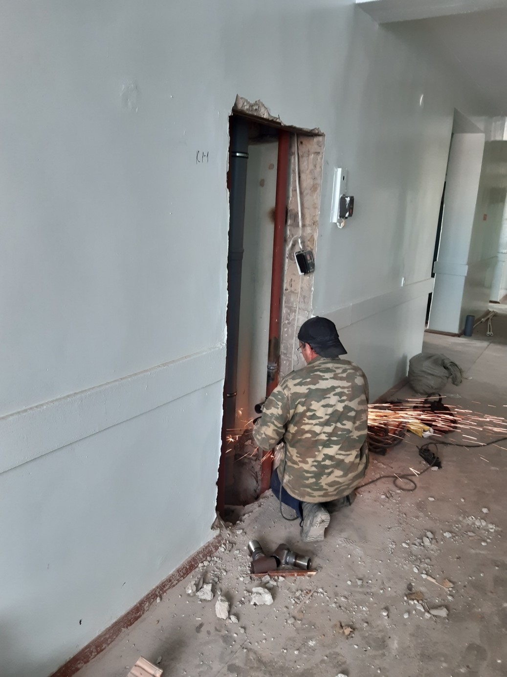 Прямо из окон кардиоожогового центра врачи и пациенты следят за ремонтом хирургического корпуса. Недавно туда завезли большую партию труб. Самые любопытные знают: монтаж водопроводных и канализационных сетей уже произведен. Сейчас настало время для самых пыльных работ - демонтажа стеновых панелей и штукатурки.