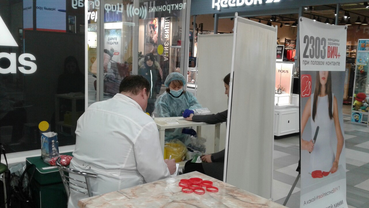 В ТЦ «Макси» прошла уже традиционная для Читы акция: любой желающий в течение 10 минут, анонимно и абсолютно бесплатно, мог узнать свой ВИЧ-статус. Такую возможность читинцам и гостям города предоставили специалисты Центра СПИД краевой клинической инфекционной больницы. Как всегда, активно помогали студенты-волонтеры, приглашавшие обратиться в мини-лабораторию, развернутую на территории торгового центра.