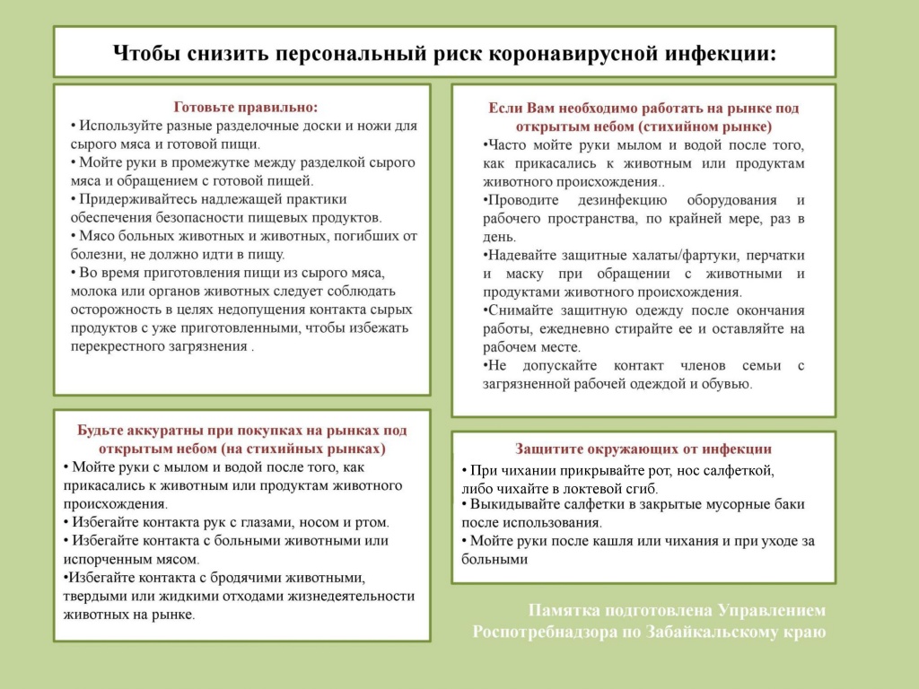 Меры для снижения персонального риска коронавирусной инфекции