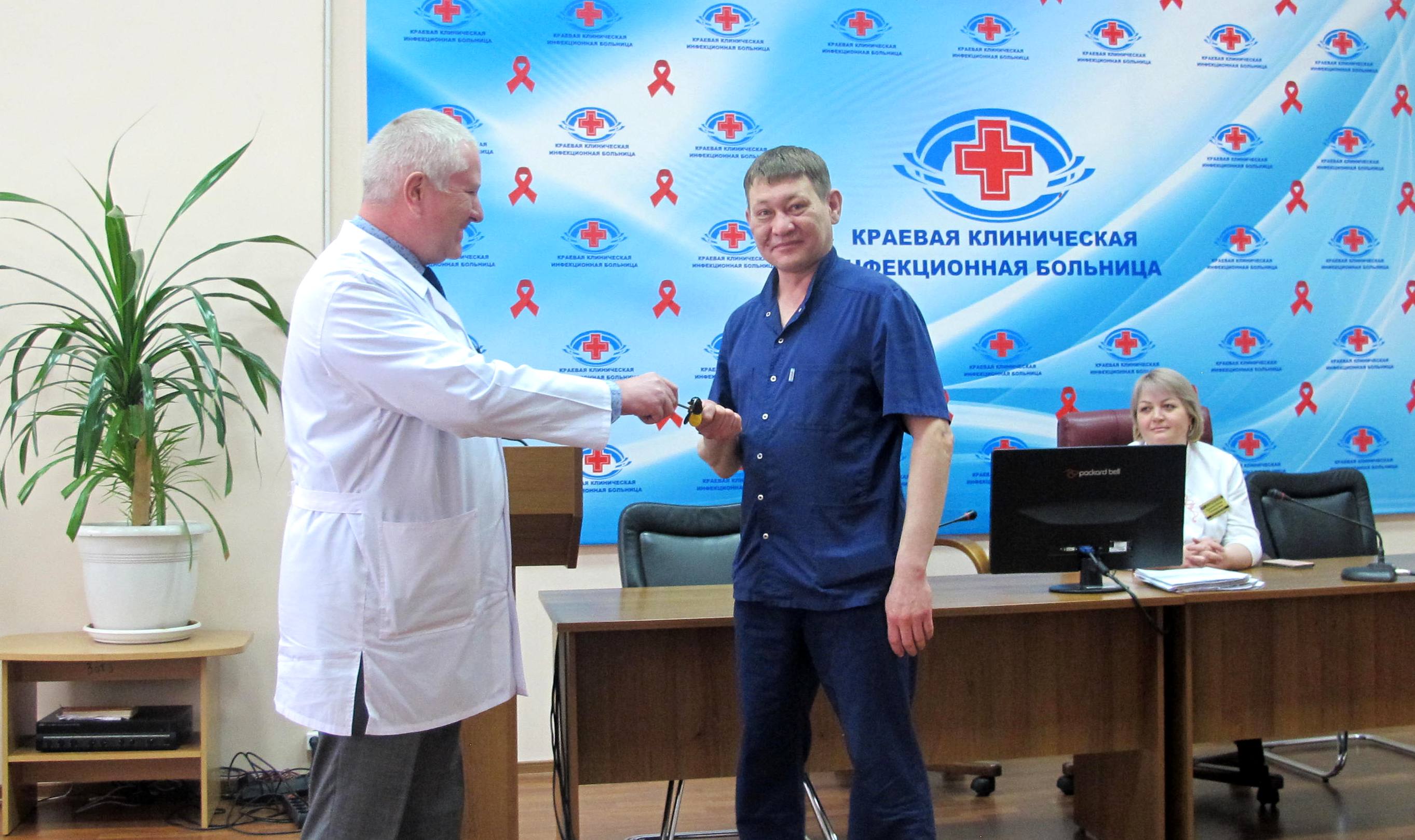 Судьбоносной стала очередная планерка в краевой клинической инфекционной больнице. Главный врач Сергей Юрчук вручил ключи от служебной квартиры специалисту медучреждения, врачу анестезиологу-реаниматологу Виктору Казанцеву.