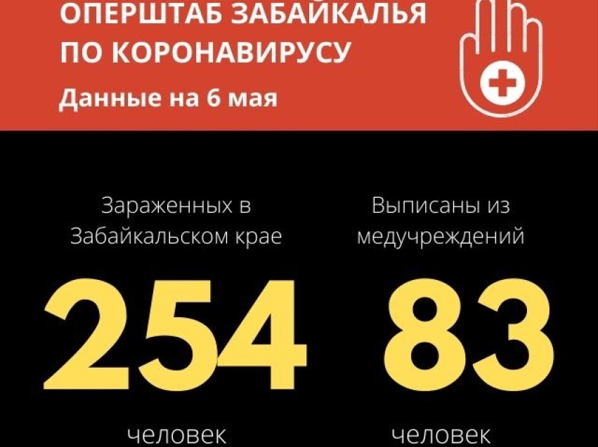 По состоянию на 6 мая в Забайкальском крае зарегистрировано 254 лабораторно подтвержденных случая заболевания COVID-19, 32 из них – дети.