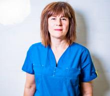 Елена Мазур: "После первого года обучения пошла на практику в первую городскую больницу. Мне очень понравилось отделение гнойной хирургии и я осталась там работать санитаркой. По окончании колледжа осталась работать медицинской сестрой. Сначала работала в ночь, а потом меня перевели в перевязочный кабинет. Работа мне очень нравилась, но предложили мне возглавить отделение гипербарической оксигенации (лечение кислородом), и я перешла туда, но работу в гнойной хирургии я не оставляла, также дежурила в ночь и по выходным на ставку тоже там работала. И вот пришла я на работу в 1988 году, а с 1991 года начала работать старшей сестрой отделения ГБО, но всегда брала дежурства сначала в отделении неврологии, а потом, помимо своей основной ставки перешла дежурить в реанимацию".