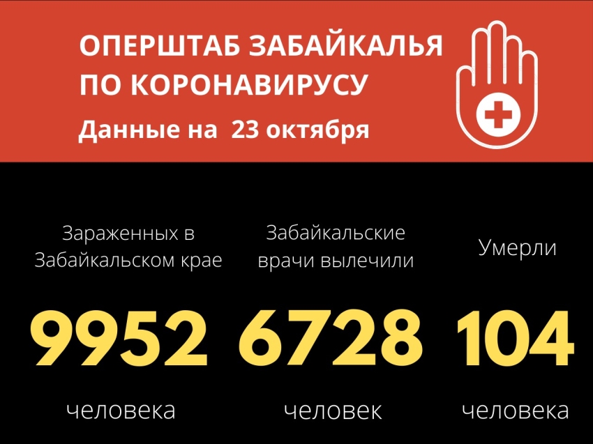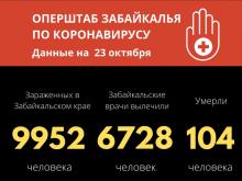 По данным регионального оперативного штаба, на 23 октября в Забайкальском крае зафиксированы еще пять летальных случаев, связанных с новой коронавирусной инфекцией. Общее число смертей за весь период достигло уже 104.