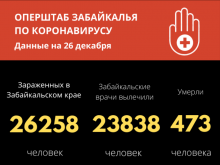 По данным на 26 декабря, за последние сутки 261 забайкалец выздоровел от COVID-19. Число победивших инфекцию с начала года составило 23838.