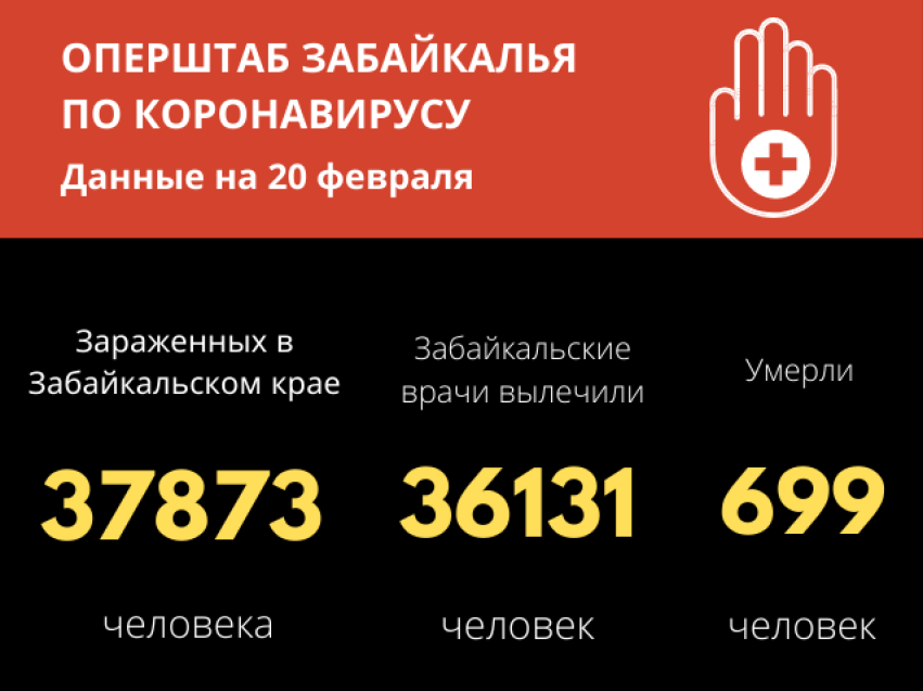 По данным на 20 февраля, за последние сутки 185 забайкальцев выздоровели от коронавируса. Число победивших инфекцию с начала прошлого года составило 36 131 человек.