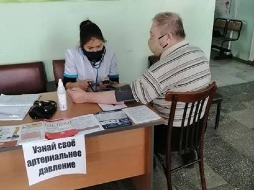 Волонтеры и сотрудники больницы измеряли желающим давление, проводили краткое профилактическое консультирование по развитию заболеваний сердечно-сосудистой системы и раздавали информационные буклеты.