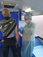 Мобильные пункты вакцинации в помещениях торговых центров «Абсолют» (Новобульварная, 55) и «Новосити» (Журавлева, 79) продолжают работу ежедневно с 14.00 до 20.00. Ещё один пункт вакцинации работает на площадке торгового центра «Фортуна», (Недорезова,1М) ежедневно с 13.00 до 20.00. Чтобы пройти вакцинацию, необходимо иметь при себе паспорт, снилс и полис.