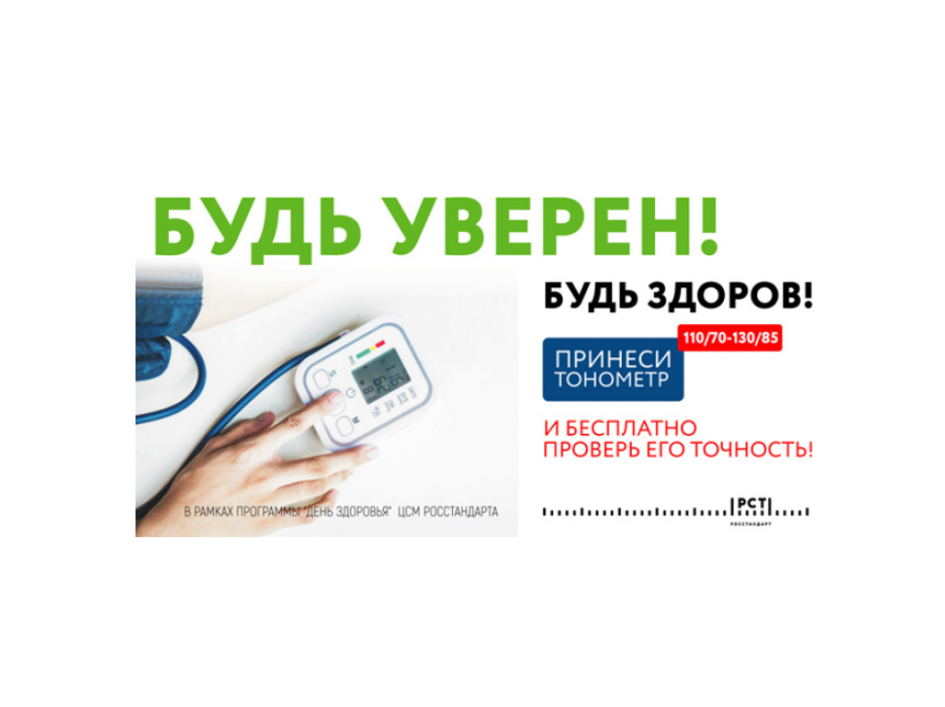 Федеральное агентство по техническому регулированию и метрологии совместно с подведомственными организациями проводит Всероссийскую акцию «Будь уверен! Будь здоров!», приуроченную ко Всемирному дню здоровья. Акция призвана донести до жителей важность регулярной проверки бытовых тонометров для предупреждения сердечно-сосудистых заболеваний.