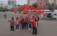Также 22 волонтера-медика, помогавших в проведении акции, организовали на площади флешмоб: держа в руках красные шары, они выстроились в фигуру в виде алой ленты и выпустили их в небо в память об ушедших.